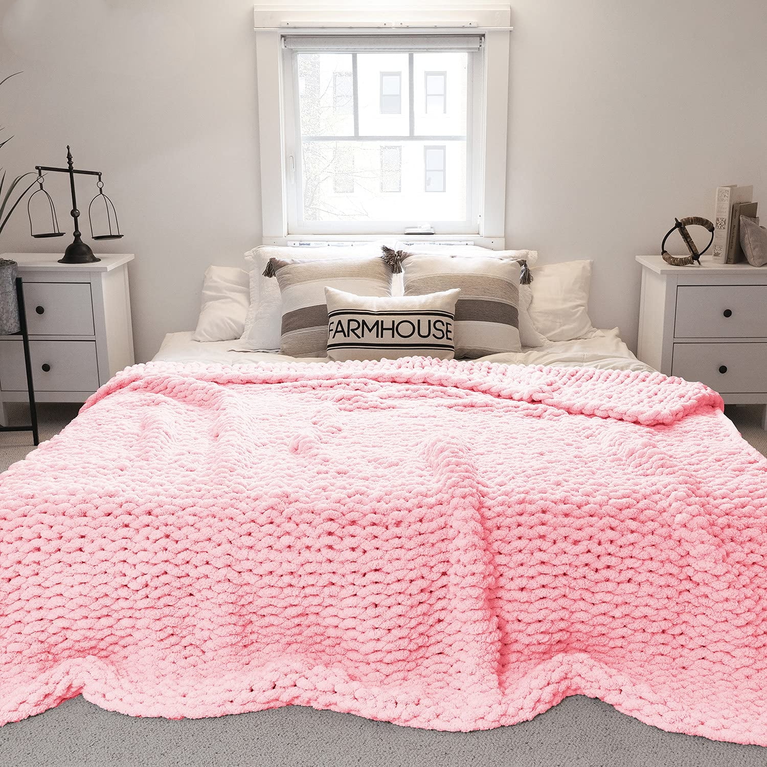 Amazon Com Chunky Knit Blanket Throw 50 X60 3 7 Lbs Soft Chenille Yarn Knitted Blanket Machine Washable Crochet Blanket Handmade Cable Knit Throw Blanket For Couch Bed Blush Pink Home Kitchen
