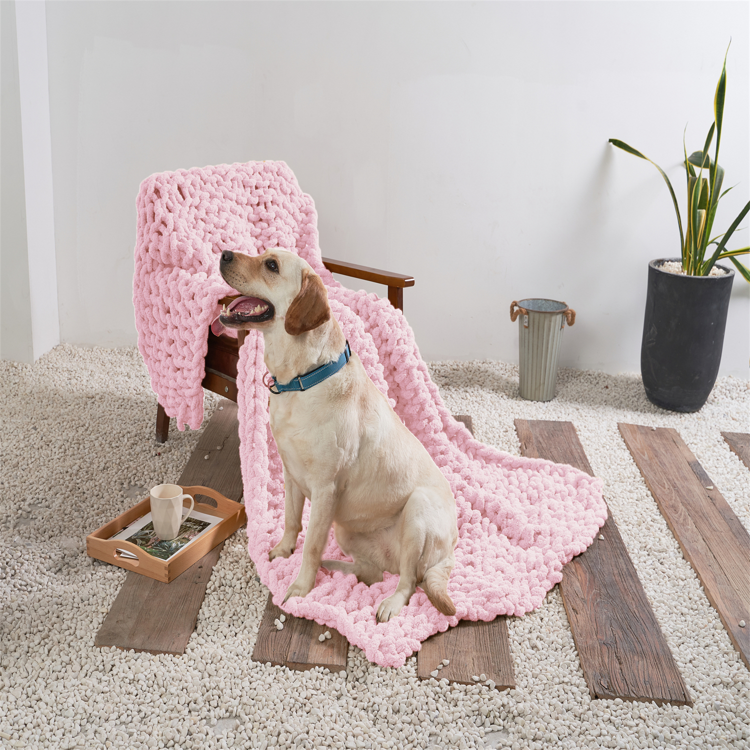 Pink Chunky Knitted Blanket Basic Outline Interiors